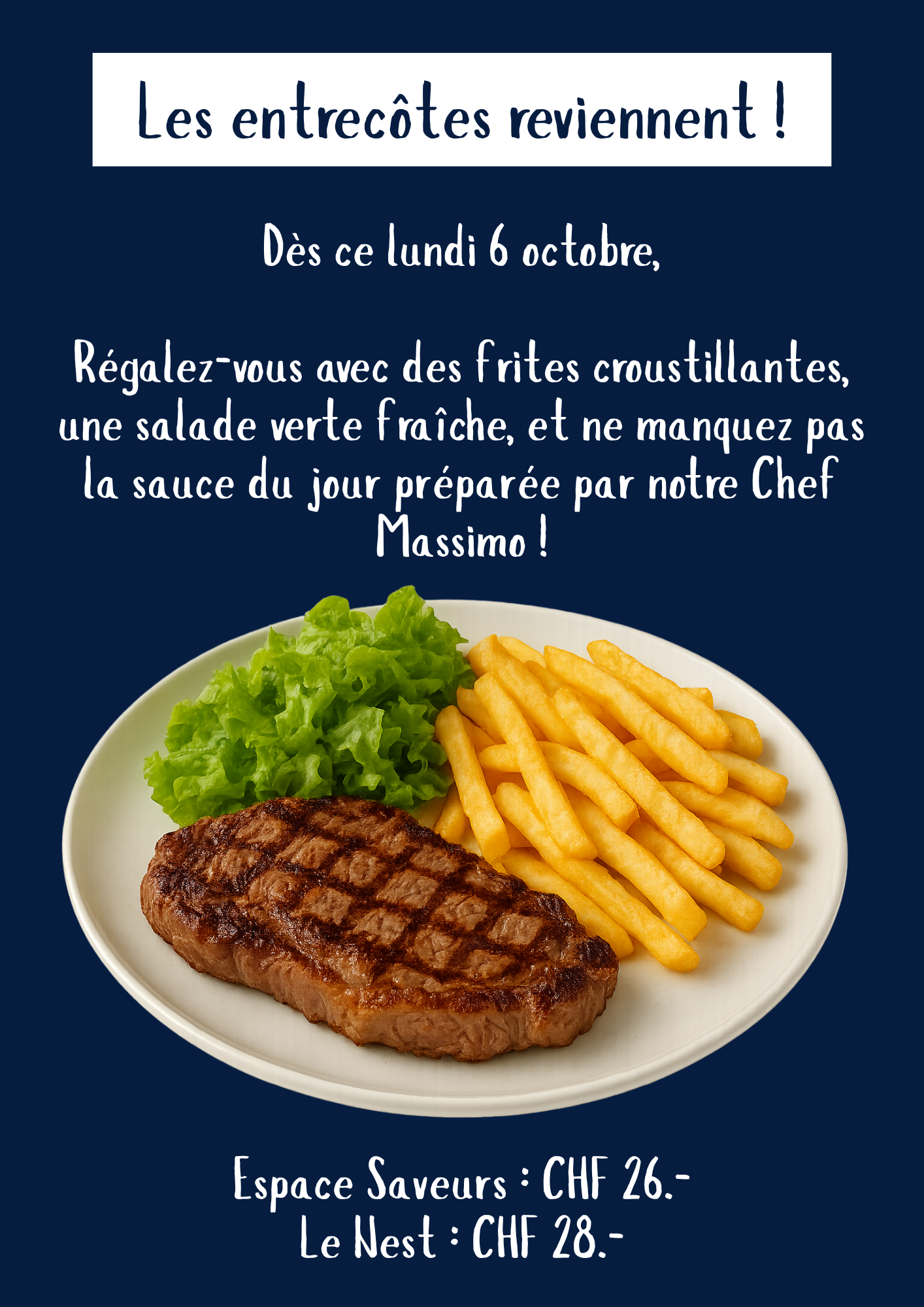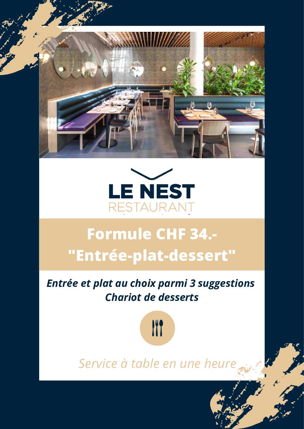 Notre restaurant Le Nest sera exceptionnellement fermé ce mercredi 19 novembre Nos apprentis vous attendent et vous servent toujours en moins d'une heure, réservez vite votre place !